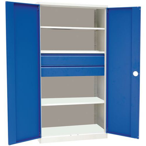 | Productnaam | Hoge werkplaatskast Magic, Max. belasting: 250 kg, Materiaal: Staal, Totale hoogte: 1950 mm, Aantal laden: 2 |