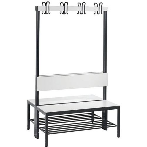 Houten bank met kledinghaken, dubbelzijdig, met rugleuning Basic plus - met en zonder rooster - CP Houten bank met kledinghaken, dubbelzijdig, met rugleuning Basic plus - met en zonder rooster - CP