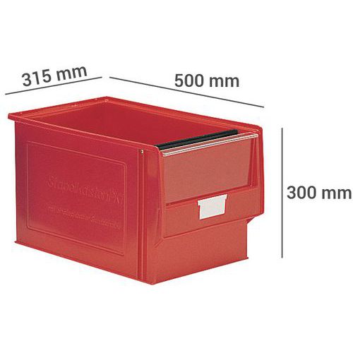 | Productnaam | Industriële stapelbak, Totale inhoud: 38 L, Materiaal: Kunststof, Totale lengte: 500 mm |