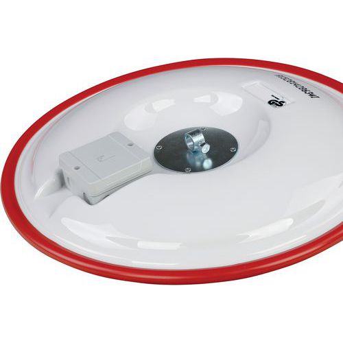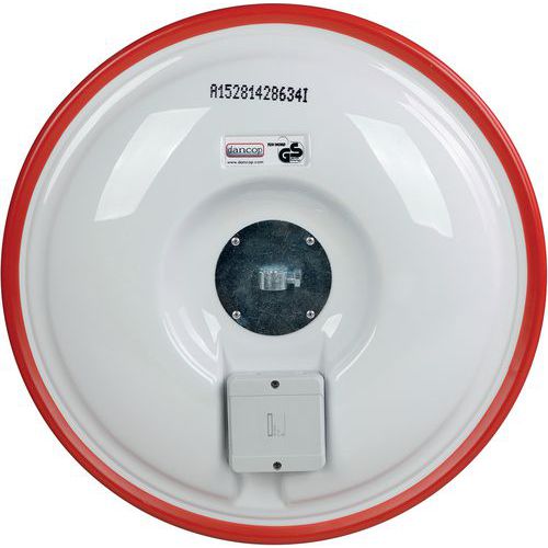 Industriële veiligheidsspiegel voor meer veiligheid in industriegebieden, enz. Bestand en robuust: getest bij harde windstoten van kracht 12 (orkaan groter dan 117 km/u). Vierpuntsbevestiging aan paal of muur met kogelgewricht voor een betere afstelling. Rood kader om de aandacht te trekken. Acrylspiegel: sterker dan glas. Uitstekende beeldfeedback zonder vervorming. Eenvoudig te installeren. Gemaakt in de EU
