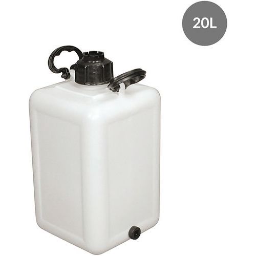 | Productnaam | Jerrycan met aftapplug, Totale inhoud: 20 L, Kleur: Wit, Lengte: 250 mm, Breedte: 250 mm, Hoogte: 450 mm |