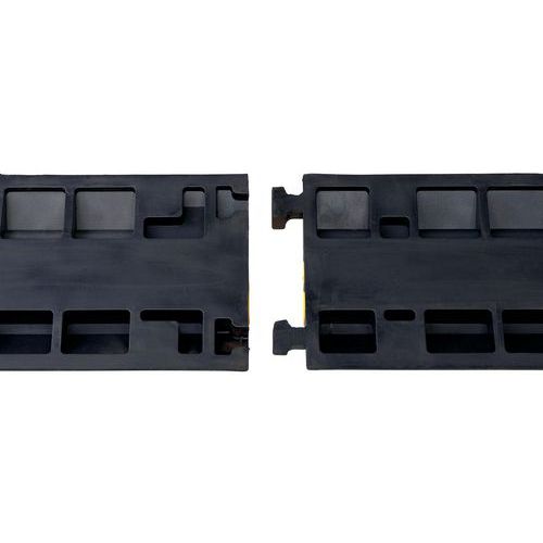 Modulaire kabeldoorgang met kanalen en beschermkap. Eenvoudige en veilige montage van de modules met klempoten. Zwart massief rubberen materiaal met stevig PE-deksel. In massa geverfd rubber: bestand tegen kou en intens verkeer. Geprofileerde goot voor een perfecte glijding van voertuigen terwijl ze passeren.