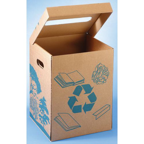 | Productnaam | Kartonnen afvaldoos met opening, Totale inhoud: 36 L, Opening: Gleuf, Materiaal: Karton, Materiaal: Karton |
