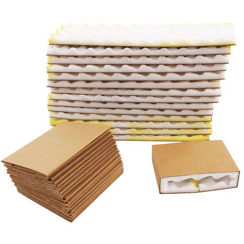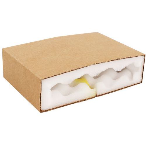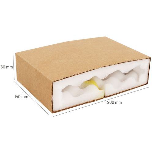 Kokeretui met dubbele bescherming aan binnen- en buitenkant. Doos met beschermende voering van 2 platen van niet-schurend schuim. Zeer bestendige huls van gegolfd kraftkarton. Verstuur al uw breekbare producten per post!