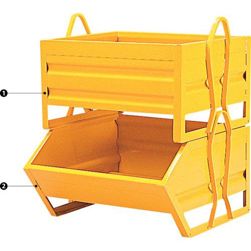 De kiepcontainer is stapelbaar of eenvoudig vast te zetten met een takel. U verplaatst de kiepbak met een pallethefwagen of heftruck. Gemaakt in de EU Klantgarantie : 3 jaar Max. belasting (kg) : 2000