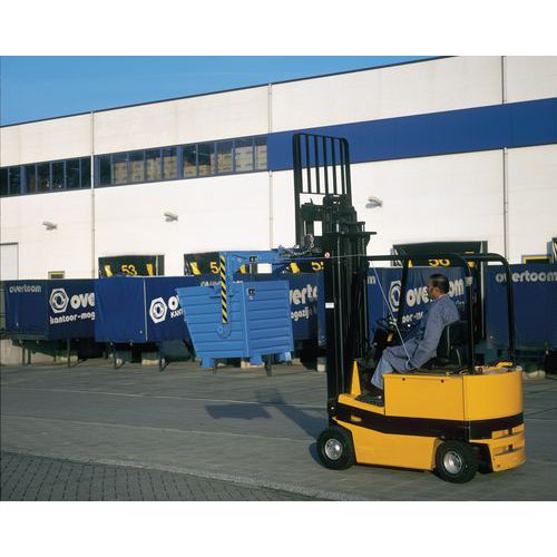 - Stalen mechanische heftrucktraverse voor het legen van de kantelbare afvalcontainers.