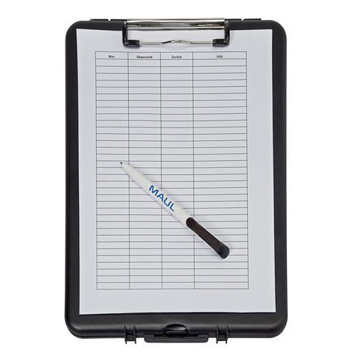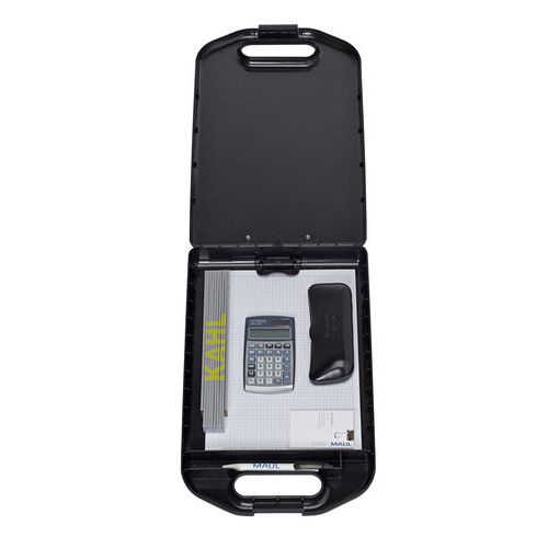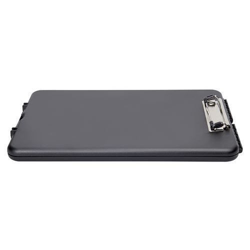 - Kunststof klembord met stevig schrijfoppervlak en opbergvak.
