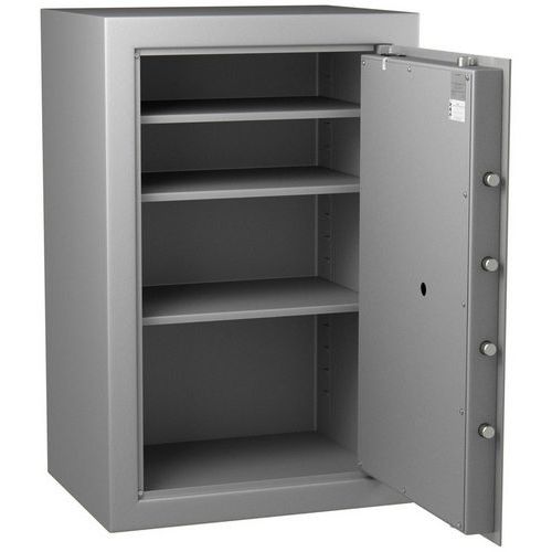 Kluis Vulcain-serie van 40 tot 205 liter. Anti-inbraakbeveiliging conform de Duitse norm VDMA niveau B. Vergrendelingssysteem met mangaanbepantsering tegen doorboring. In hoogte verstelbaar legbord. Bezorging op afspraak met bedrijfsklaar maken bij de klant en afvoer van verpakkingsmateriaal voor recycling. Begane grond met maximaal 2 treden of verdieping met lift. Maximaal 20 meter rijden. Neem voor alle speciale verzoeken met betrekking tot de levering contact op met onze klantenservice (moeilijk toegankelijke plaatsen, steile hellingen, zachte grond). VDS