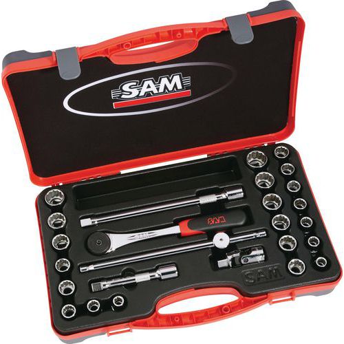 | Productnaam | Koffer 1/2 met 26 delig gereedschappen in inch en in mm, Aantal stuks: 26, Type nr.: 75-SPM26 |