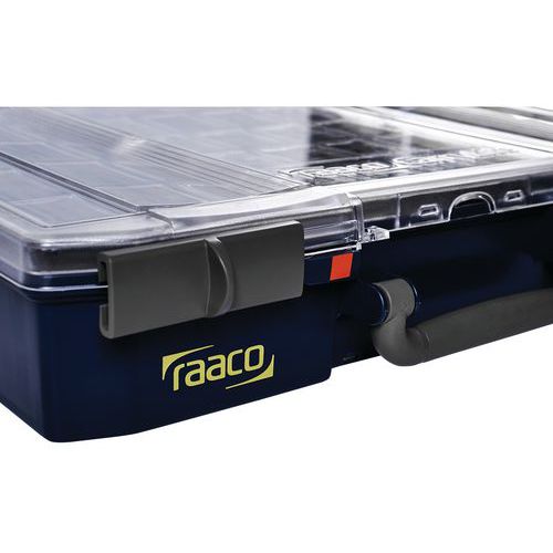 Koffer CarryLite van polypropyleen en deksel van polycarbonaat met 9 inzetbakjes.