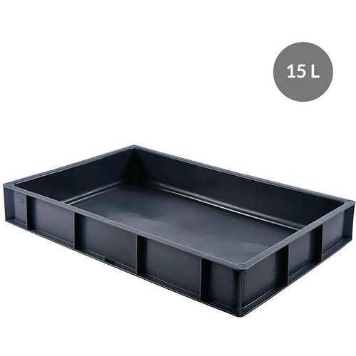 Dichte kist 600x400. Voor catering en restaurants: opslagkist voor grondstoffen. Stapelbaar met en zonder deksel, grote capaciteit voor stapelen in hoogte. Platte bodem waarop geen resten achterblijven, eenvoudig te reinigen. Koelen/vriezen Culinair Max. belasting (kg) : 15 kg
