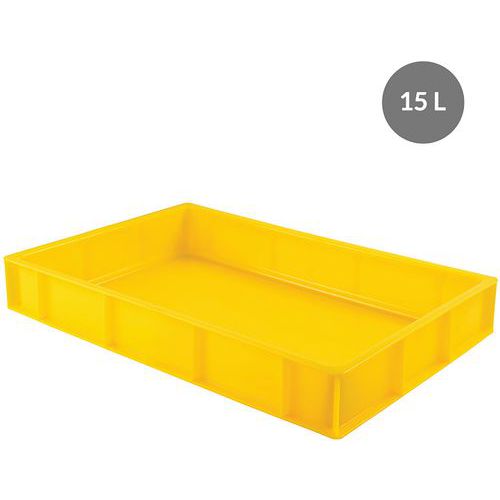 Dichte kist 600x400. Voor catering en restaurants: opslagkist voor grondstoffen. Stapelbaar met en zonder deksel, grote capaciteit voor stapelen in hoogte. Platte bodem waarop geen resten achterblijven, eenvoudig te reinigen. Koelen/vriezen Culinair Max. belasting (kg) : 15 kg