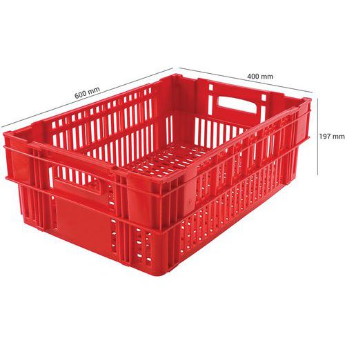 Krat geperforeerd stapelbaar en nestbaar 27, Totale inhoud: 37 L, Totale hoogte: 197 mm Krat geperforeerd stapelbaar en nestbaar 27, Totale inhoud: 37 L, Totale hoogte: 197 mm