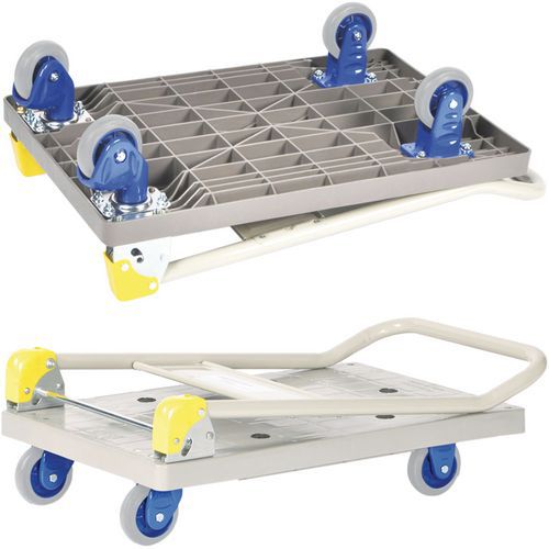 | Productnaam | Kunststof plateauwagen met neerklapbare duwbeugel, Max. belasting: 150 kg, Totale hoogte: 1050 mm |