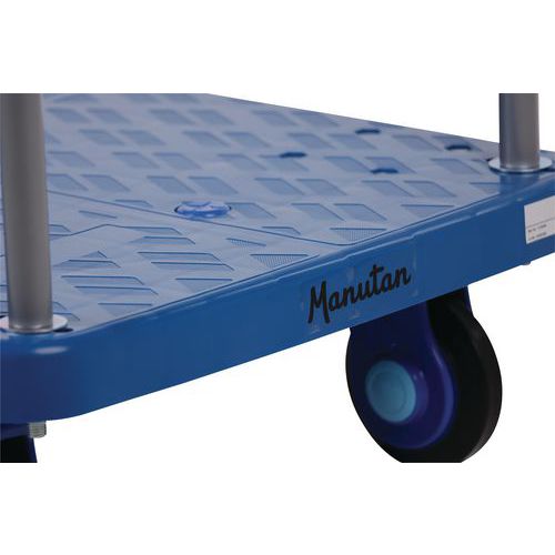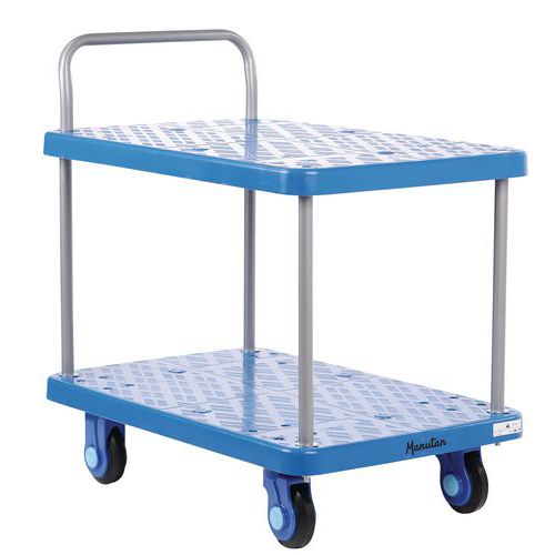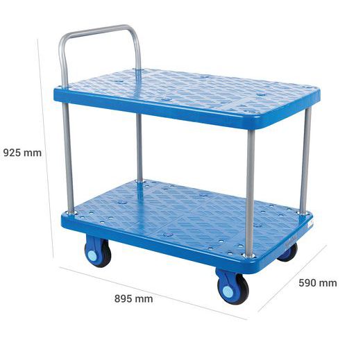 | Productnaam | Kunststof wagen met 2 plateaus, Max. belasting: 300 kg, Totale hoogte: 925 mm, Totale breedte: 590 mm |