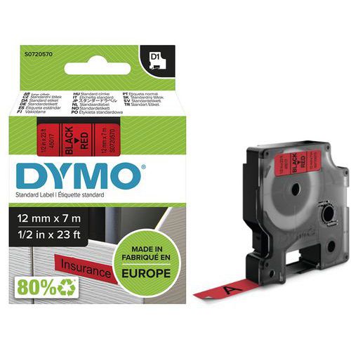 Labelcassette D1 breedte 12 mm, Bord kleur: Rood, Type: 45017, Lengte lint: 7 m, Voor model: LP100 tot 350 Labelcassette D1 breedte 12 mm, Bord kleur: Rood, Type: 45017, Lengte lint: 7 m, Voor model: LP100 tot 350