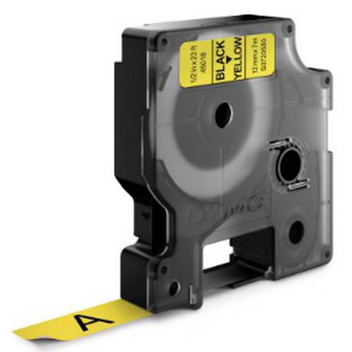 Labelcassette D1 breedte 12 mm, Bord kleur: Geel, Type: 45018, Lengte: 7 m, Lengte lint: 7 m Labelcassette D1 breedte 12 mm, Bord kleur: Geel, Type: 45018, Lengte: 7 m, Lengte lint: 7 m