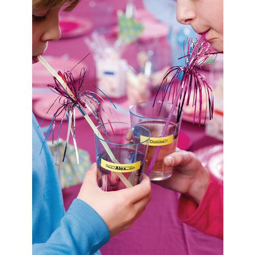 Geschikt voor diverse oppervlakken en verkrijgbaar in 3 modellen: Gekleurde kunststof tape: scheurbestendig en geschikt voor alle oppervlakken. Opstrijktape: wasbaar en geschikt om op kleding en stof te strijken. Papieren tape: voordelig, eenvoudig lijmen, knippen en verwijderen. Authentic Dymo Label Etiquet Voor het snel organiseren van kantoor, magazijn, keuken of garage