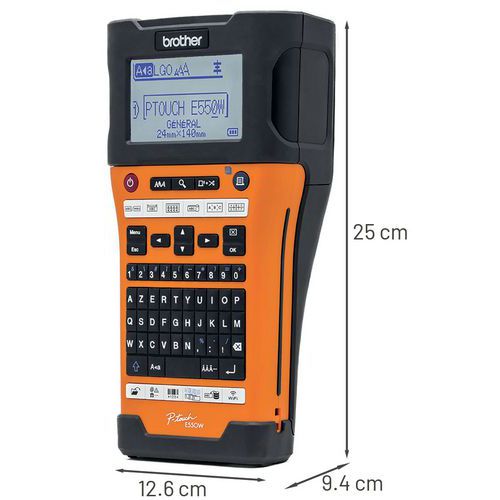 | Productnaam | Labelprinter Brother PT-E550WVP Azerty, Voeding: Batterij, Lengte: 25 cm, Breedte: 12.6 cm, Hoogte: 9.4 cm |