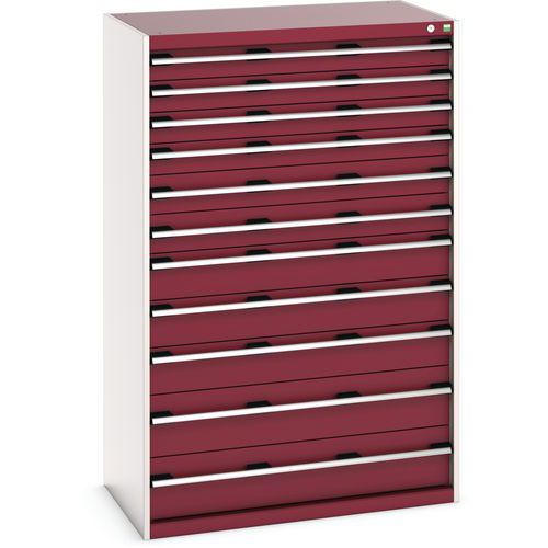 Ergonomische handgrepen voor van boven of van onderen vastpakken, standaard met blokkeersysteem van laden, individuele vergrendeling van de laden als optie verkrijgbaar.