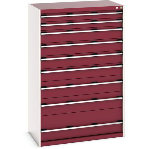 Ergonomische handgrepen voor van boven of van onderen vastpakken, standaard met blokkeersysteem van laden, individuele vergrendeling van de laden als optie verkrijgbaar.