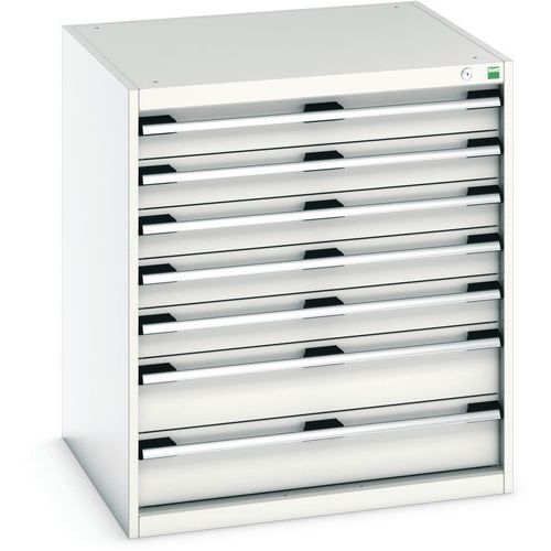 Ergonomische handgrepen voor van boven of van onderen vastpakken, standaard met blokkeersysteem van laden, individuele vergrendeling van de laden als optie verkrijgbaar.