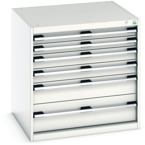Ergonomische handgrepen voor van boven of van onderen vastpakken, standaard met blokkeersysteem van laden, individuele vergrendeling van de laden als optie verkrijgbaar.