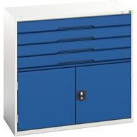 Ladeblok van gelast plaatstaal met verstevigingen voor gebruik in een industriële omgeving. Een unieke diepte van 550 mm. Ladebevestiging op draagrails met lagers die een maximaal draagvermogen hebben van 60 kg. Eenvoudige opening en sluiting, zelfs bij volledige last. Sluiting van de laden met centrale vergrendeling Veiligheidstips: - Plaats het meubel op een vlak oppervlak - Bevestig het aan de muur of een scheidingswand met een speciale bevestiging - Let erop dat u de aanbevolen maximale belasting niet overschrijdt en zorg voor een goede verdeling Gemaakt in het UK Max. belasting per legbord (kg) : 75 kg Max. belasting (kg) : 1000 kg