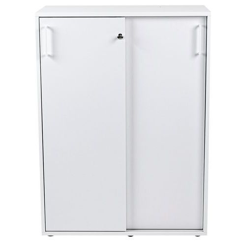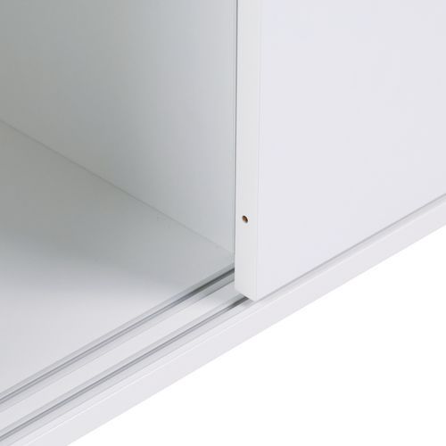 Schuifdeurkast van gemelamineerd materiaal en ABS-randen.