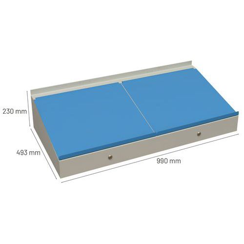 | Productnaam | Werkblad, Breedte: 990 mm, Diepte: 493 mm, Hoogte: 230 mm, Kleur: Blauw, Type: Overig |