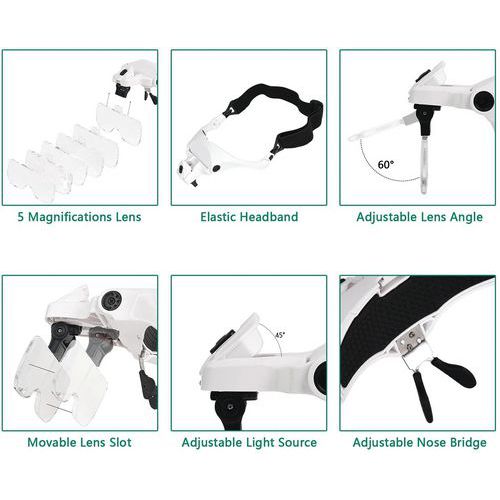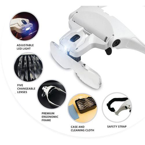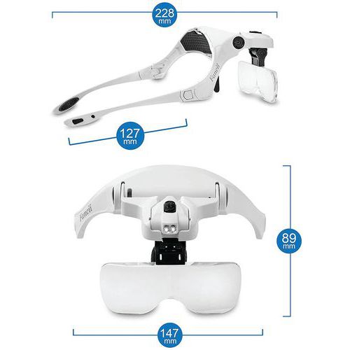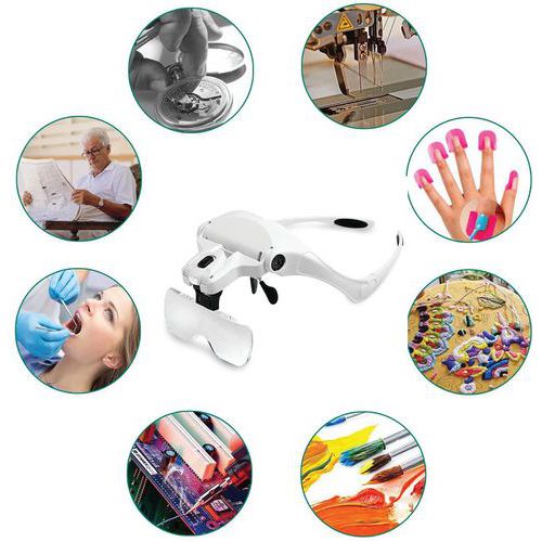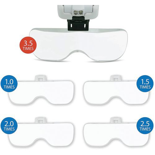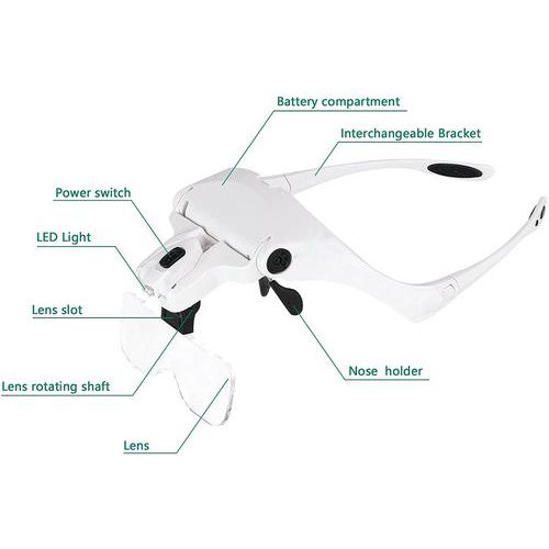 | Productnaam | Loepbril met verlichting en 5 verwisselbare dioptrieën, Lichtstroom: 12 lm, Type lamp: Led lamp of module |