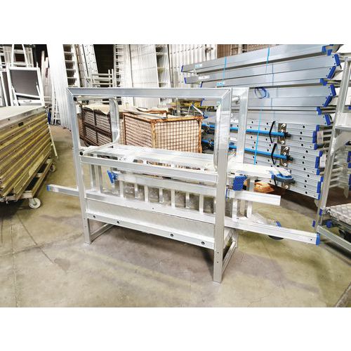 Robuuste aluminium loopbrug voor veilig werken op hoogte. Zeer stabiel dankzij twee verstelbare stabilisatoren voorzien van draaibare poten. Ruimtebesparend ontwerp met verwijderbare trapladder (vaste reling).