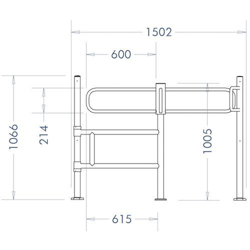 Mechanisch draai-element met geleider, Model: Links draaiend, Staaf lengte: 600 mm, Totale lengte: 1409 mm