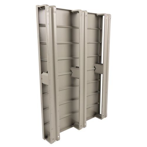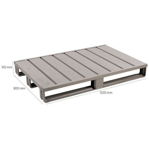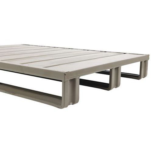 | Productnaam | Metalen pallet Poz, Max. statisch draagvermogen: 4000 kg, Breedte: 800 mm, Lengtes: 1200 mm, Model: 3 sleden |