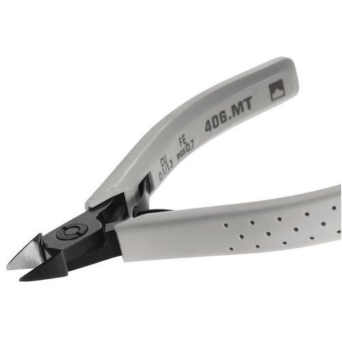 - De modellen met draadopvang voorkomen dat afgeknipte draad wegspringt. Met tang 405.MT kan pianodraad tot 0,4 mm worden geknipt.