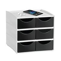 Voor het opbergen en ordenen van kleine accessoires en kantoorbenodigdheden: mobiele telefoon, agenda, USB-sticks, nietmachine, post-its, paperclips enz. Neemt niet veel plaats in.