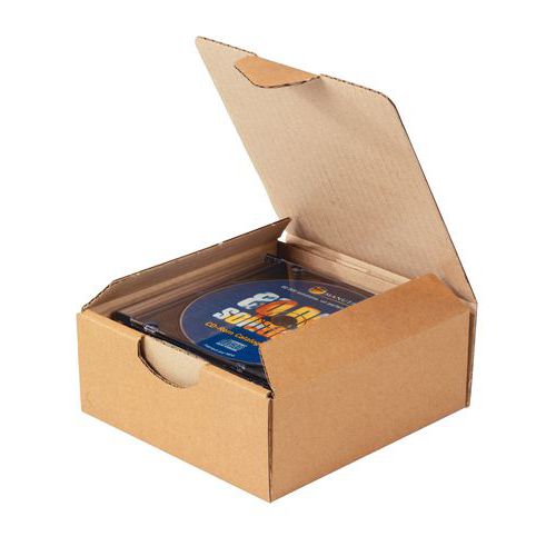 Verzenddoos van stevig kraftkarton. Eenvoudig te openen en te sluiten met lip. Verstuur al uw kleine en breekbare voorwerpen per post!