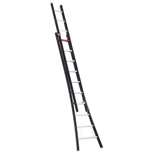 De meest comfortabele ladder van Nederland. De Nevada is voorzien van slimme eigenschappen. Het ergonomisch kokerprofiel met ERGO-GRIP zorgt voor een stevige, natuurlijke greep. De extra hoge sporten bieden je optimaal steun aan je scheenbenen. Bovendien is deze reformladder multifunctioneel. Gebruik hem als schuifladder langs de gevel óf zet hem net zo gemakkelijk in een A-stand. Perfect voor elke klus. De extra diepe treden met antislip stavlak zorgen voor meer stacomfort en met de uitgebogen bomen sta je stevig en stabiel. De ladder is eenvoudig in en uit te schuiven door de kunststofgeleiding en de toprollen aan de uiteinden. De kenmerkende zwarte coating is naast mooi ook nog eens vuilafstotend. Max. belasting (kg) : 150 kg