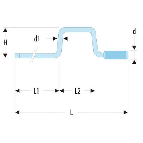 | Technische gegevens | d [mm]: 29, d1 [mm]: 9,5, H [mm]: 75, L [mm]: 420, L1 [mm]: 195, L2 [mm]: 125, [g]: 425 |