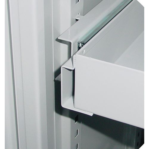 Stalen opvangbak onder in de kast van 80 mm hoog, gemonteerd op schuifrails.