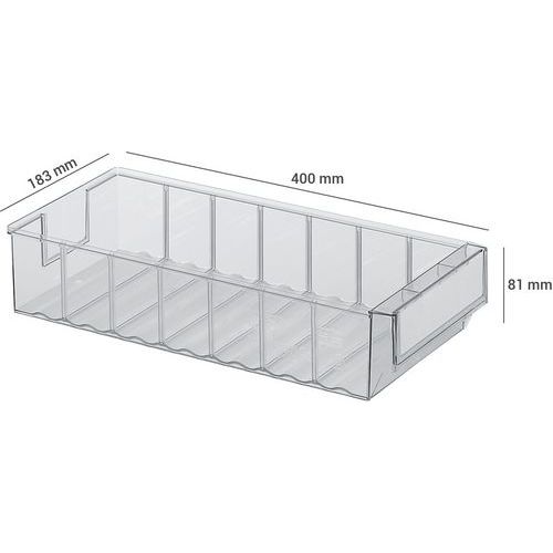 Magazijnbak, Totale inhoud: 4.5 L, Totale hoogte: 81 mm, Totale breedte: 183 mm, Totale lengte: 400 mm