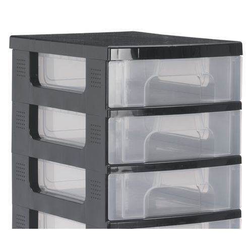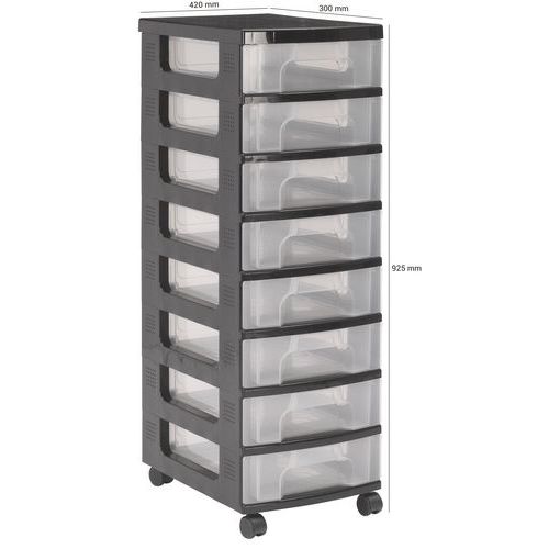 Ladeblok gemonteerd op 4 zwenkwielen voor een maximale wendbaarheid. Transparante laden zodat de inhoud beter te zien is . Gesloten voor een maximale bescherming tegen stof. Toren met aparte zones op de zijkant voor een eenvoudige etikettering. Gemaakt in het UK