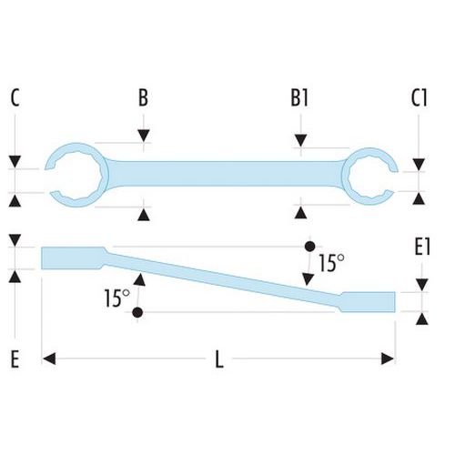 Open ringsleutel 15° gebogen in inches Open ringsleutel 15° gebogen in inches