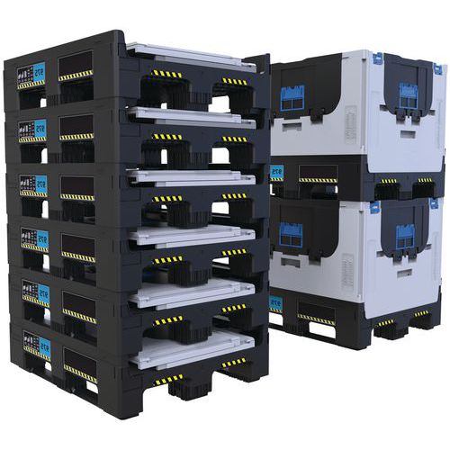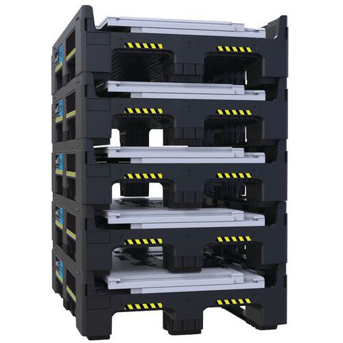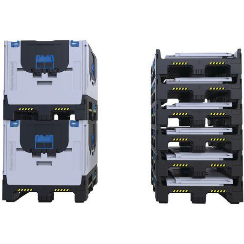 | Productnaam | Opklapbare palletkist Magnum, Totale inhoud: 847 L, Max. belasting: 750 kg, Totale hoogte: 975 mm |