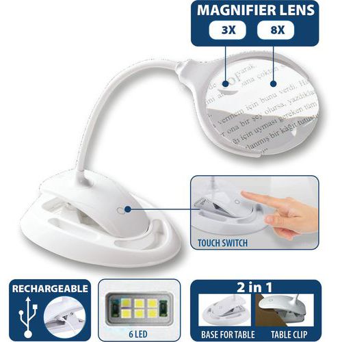 | Productnaam | Oplaadbare led-lamp met loep, dioptrie 3 en 8, Lichtstroom: 60 lm, Type lamp: Led lamp of module |