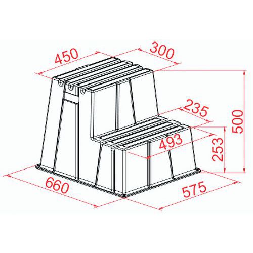 Opstapkrukje antislip, Max. belasting: 230 kg, Platform hoogte: 500 mm, Aantal treden incl. platform: 2