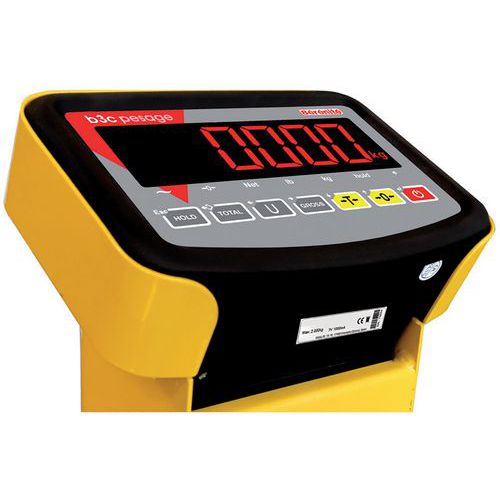 | Productnaam | Palletwagen met weegsysteem, COFRAC-gecertificeerd, Max. belasting: 2000 kg, Lengte vork: 1160 mm |