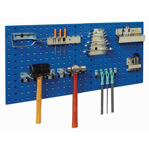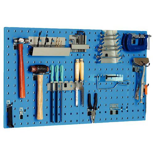 | Productnaam | Paneel en haken Perfo® 15, Kleur: Blauw, Breedte paneel: 457 mm, Hoogte paneel: 500 mm, Aantal panelen: 2 |