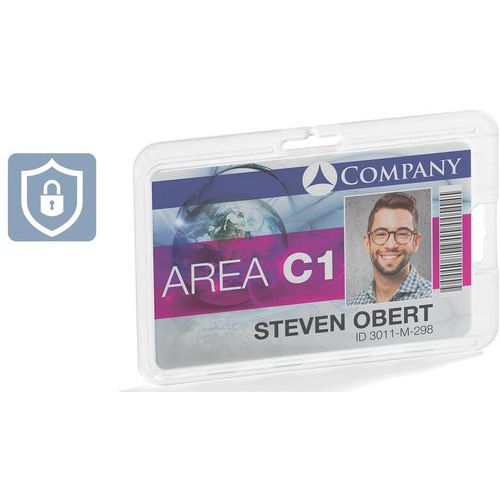 | Productnaam | Permanente badgehouder voor 1 beveiligingspas, Hoogte: 54 mm, Breedte: 87 mm, Materiaal: Polycarbonaat |