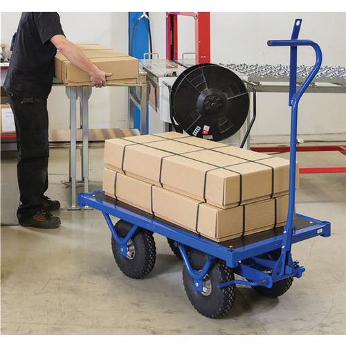 | Productnaam | Platformwagen KM330120, Max. belasting: 650 kg, Wiel loopvlak: Pneumatisch, Nuttige breedte plateau: 690 mm |
